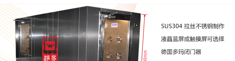 1、外型尺寸(W*D*H):1200mm*1200mm*2180mm;風淋區尺寸(W*D*H):800mm*800mm*1960mm
