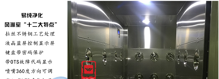 5、控制系統:PLC控制,微動觸摸式按鈕開關,LED顯示吹淋時間(0-99s可調),韓國Autonics紅外線感應,自動吹淋,智能語音提示