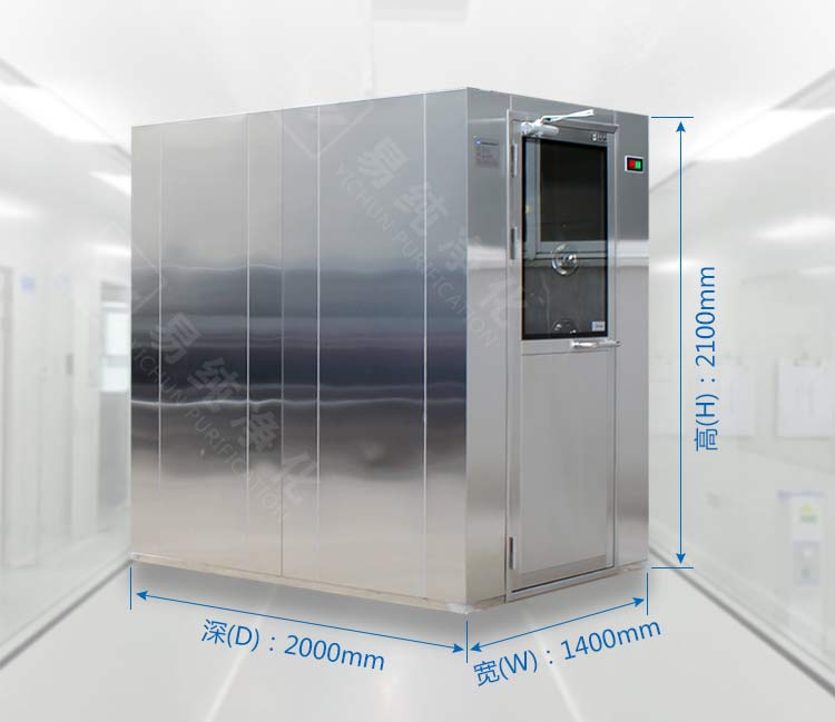 1. 外型尺寸(W*D*H):1400mm*2000mm*2100mm;風(fēng)淋區(qū)尺寸(W*D*H):800mm*1900mm*1960mm