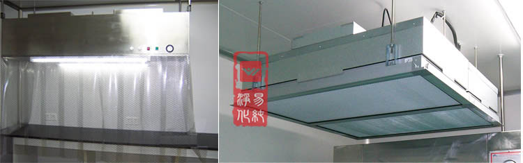潔凈層流罩(層流罩、down flow)有吊裝式和支架安裝式。送風面有孔板送風和均流膜送風兩種方式。